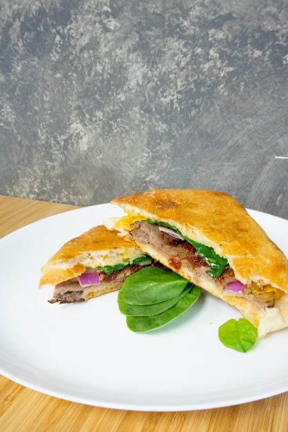 Grilled Ciabatta roll, roast beef, onion, bell peppers, choose cheddar, mozzarella, or pepper jack cheese, Choose a dressing